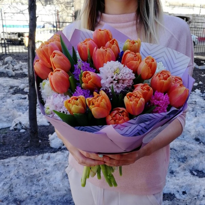 Заказала доставку букета для мамы. Букет свеженький, чуток отличается от фото, но это не портит общей картины. Доставили вовремя