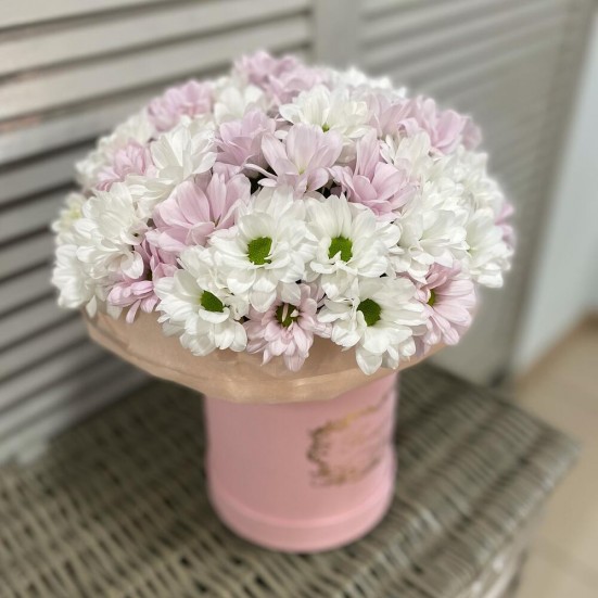 Хризантемы в шляпной коробке в Курске